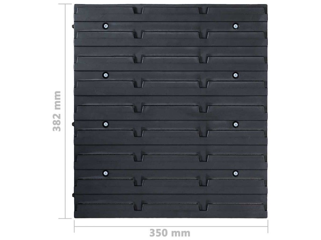 Funkční regál se stohovatelnými boxy nabízí mnoho možností pro uložení drobných předmětů, jako jsou šrouby, hřebíky, matice, nástrčky, kování atd. V 8 pevných stěnových panelech je uloženo různé upevňovací příslušenství a 60 boxů, které lze označit, pro lepší přehled o všech drobných dílech. Úložné boxy můžete vyjmout jednotlivě a naskládat je na sebe. Sada stojanů je rozšiřitelná a lze ji snadno namontovat na stěnu garáže nebo chaty. Tuto sadu úložných boxů lze uspořádat tak, aby vyhovovala všem vašim potřebám.