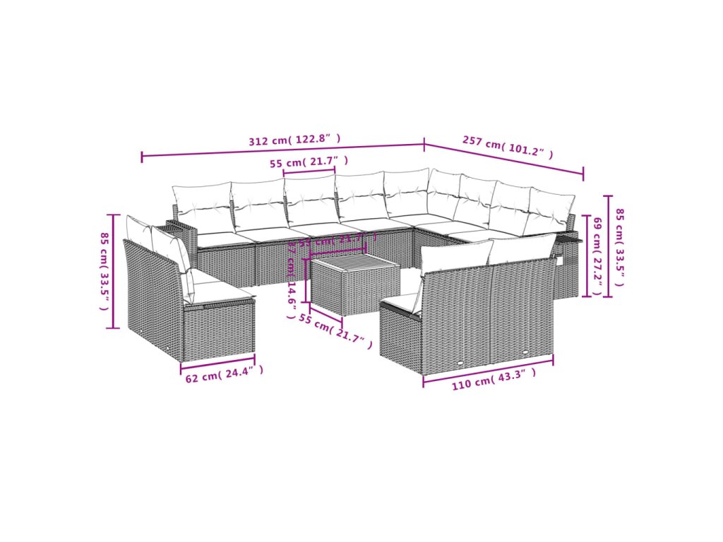- Modulární design: Tato sada venkovního nábytku se vyznačuje modulární konstrukcí, je tedy zcela flexibilní a lze ji snadno přemisťovat, takže si můžete uspořádat venkovní nábytek dle vašich potřeb.