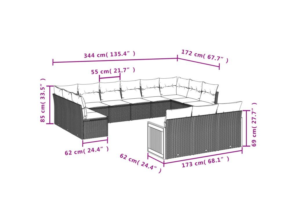 Tato zahradní sedací souprava je dokonalým doplňkem vaší zahrady, terasy nebo dvorku a poskytne vám pohodlné a příjemné místo, kde si můžete povídat s rodinou a přáteli nebo jen tak odpočívat a užívat si pobyt venku.