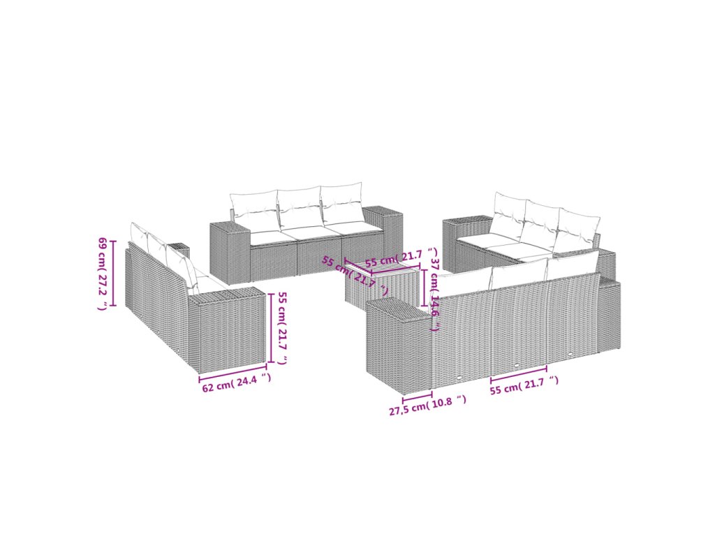 Tato zahradní sedací souprava je dokonalým doplňkem vaší zahrady, terasy nebo dvorku a poskytne vám pohodlné a příjemné místo, kde si můžete povídat s rodinou a přáteli nebo jen tak odpočívat a užívat si pobyt venku.