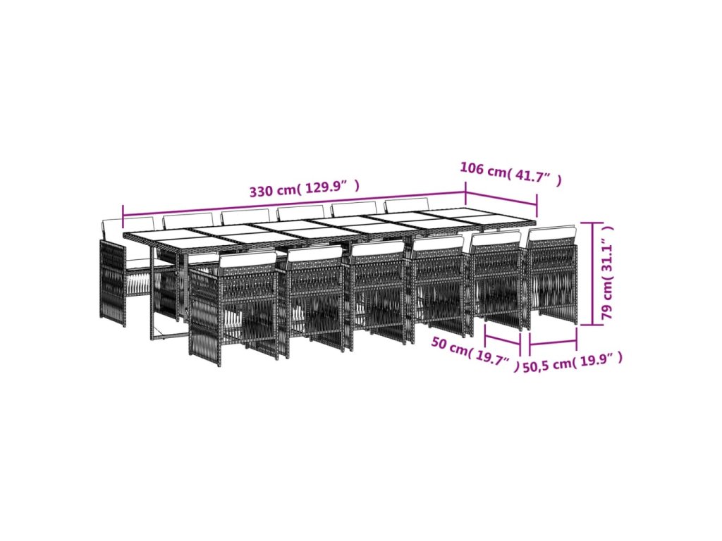 - Rozměry: 330 x 106 x 73 cm (D x Š x V)