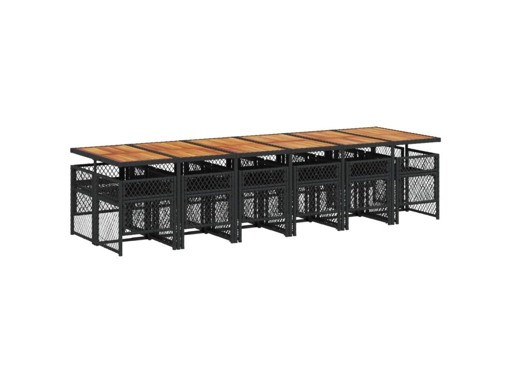 - Materiál: PE ratan, práškově lakovaná ocel, masivní akáciové dřevo s olejovou povrchovou úpravou