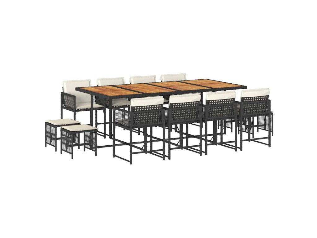 - Materiál: PE ratan, práškově lakovaná ocel, masivní akáciové dřevo