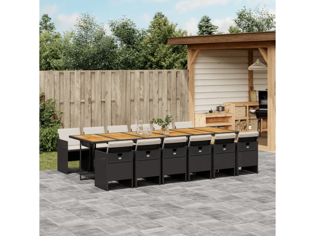 - Materiál: PE ratan, práškově lakovaná ocel, masivní akáciové dřevo s olejovou povrchovou úpravou