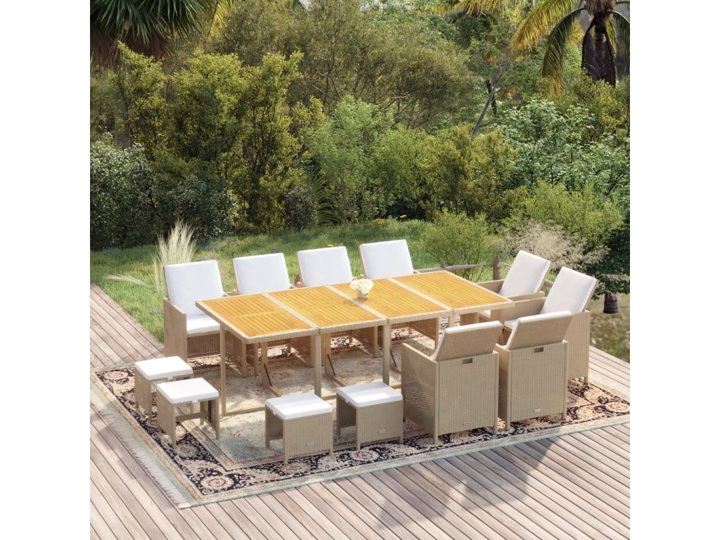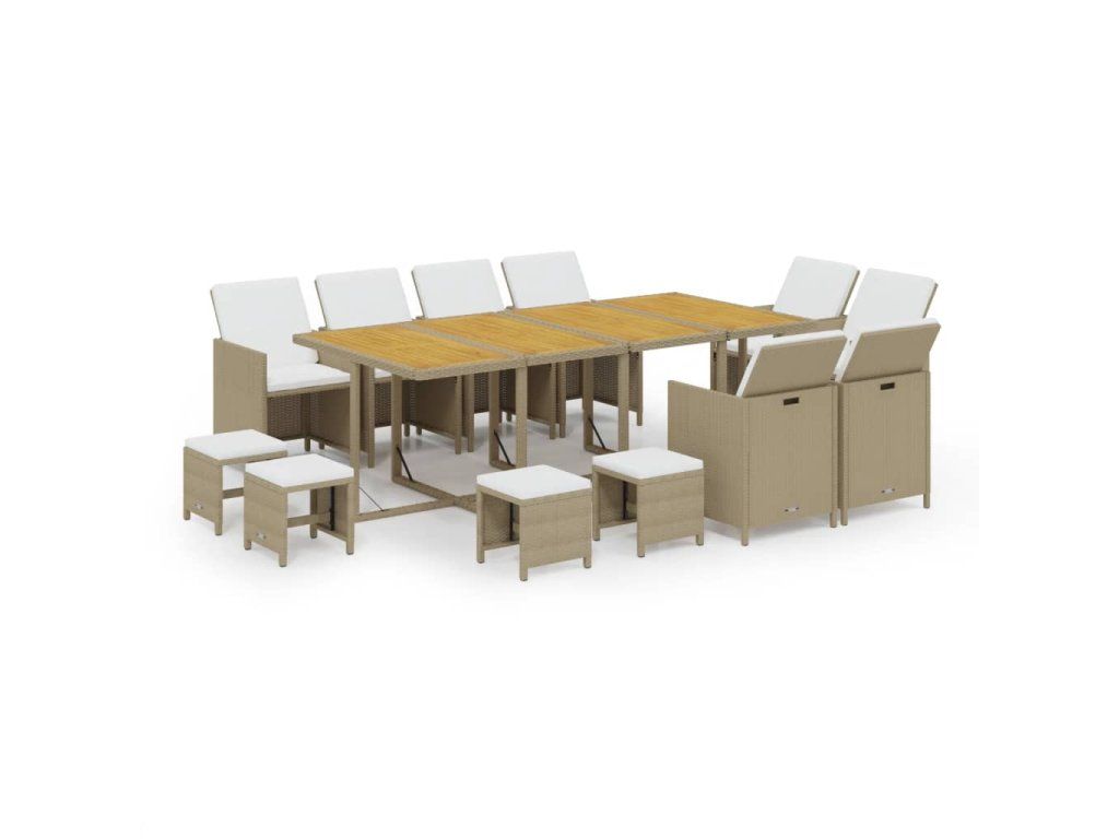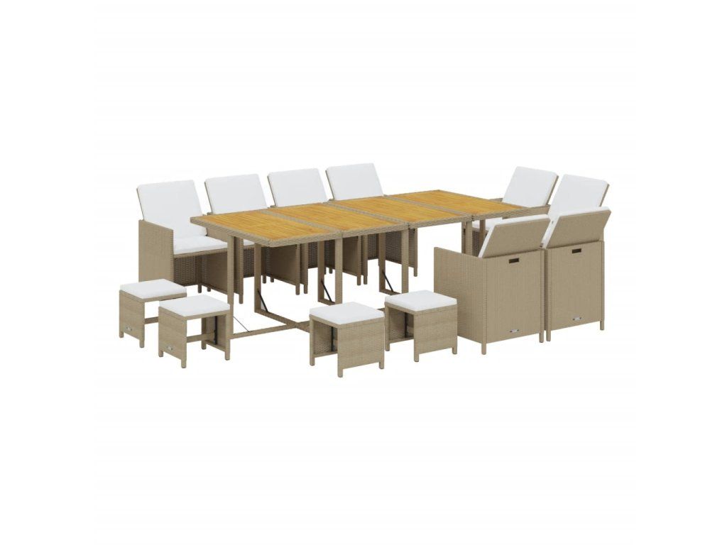 - Materiál: PE ratan, práškově lakovaná ocel, masivní akáciové dřevo s přírodní olejovou povrchovou úpravou