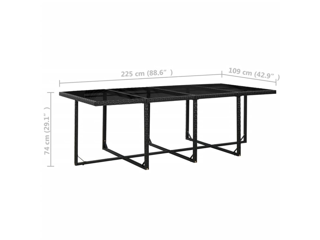 - Rozměry stolu: 225 x 109 x 74 cm (D x Š x V)