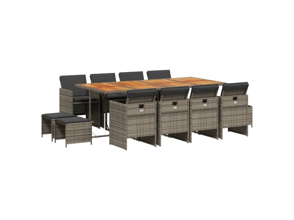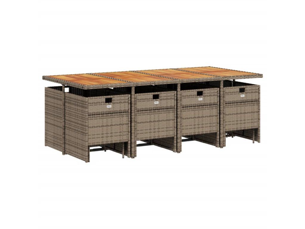 - Materiál: PE ratan, práškově lakovaná ocel, masivní akáciové dřevo s olejovou povrchovou úpravou