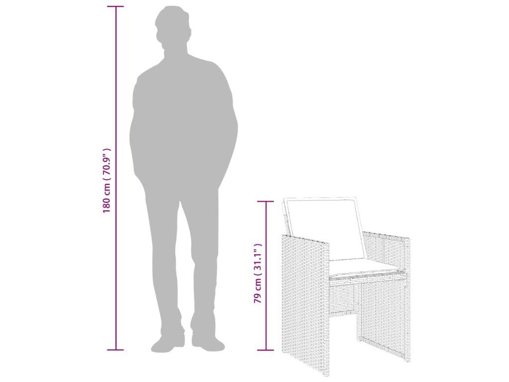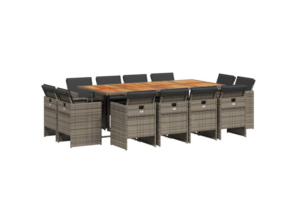 - Materiál: PE ratan, práškově lakovaná ocel, masivní akáciové dřevo s olejovou povrchovou úpravou