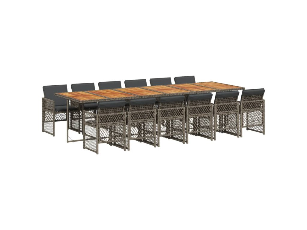 - Materiál: PE ratan, práškově lakovaná ocel, masivní akáciové dřevo s olejovou povrchovou úpravou
