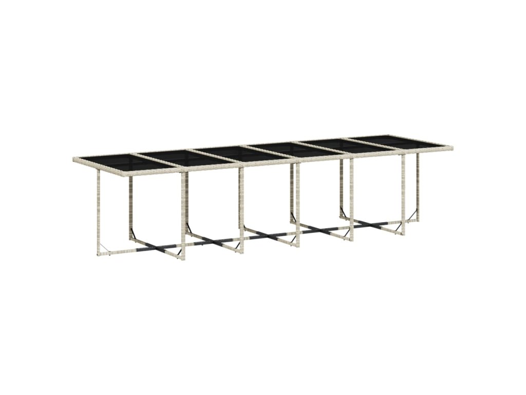 - Skleněná deska stolu: Deska venkovního stolu je zhotovena ze silného a odolného tvrzeného skla, takže ji snadno očistíte vlhkým hadříkem a zároveň do vašeho venkovního prostoru vnese nádech elegance.