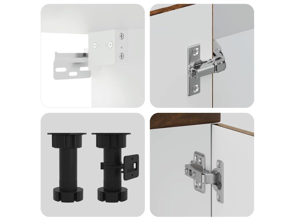 - Nastavitelné nožičky: Spodní skříňky mají nastavitelné nožičky, jejichž výšku lze nastavit tak, aby vyhovovaly uspořádání vaší kuchyně.