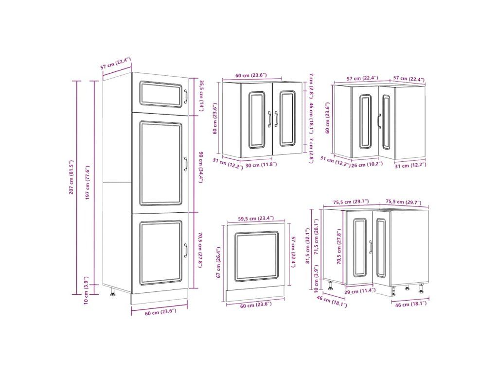 - 1x skříňka na troubu: 60 x 46 x 81,5 cm (Š x H x V)