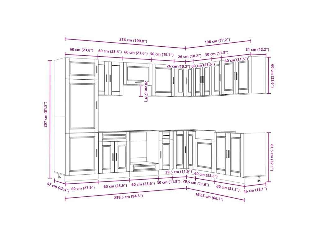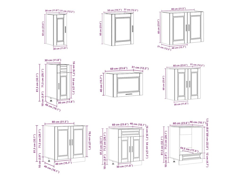 - 1x skříňka na troubu: 60 x 46 x 81,5 cm (Š x H x V)