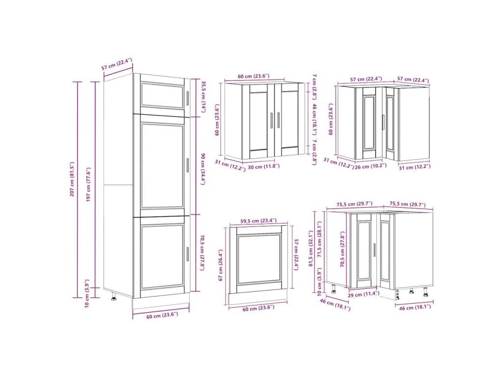 - 1x skříňka na troubu: 60 x 46 x 81,5 cm (Š x H x V)