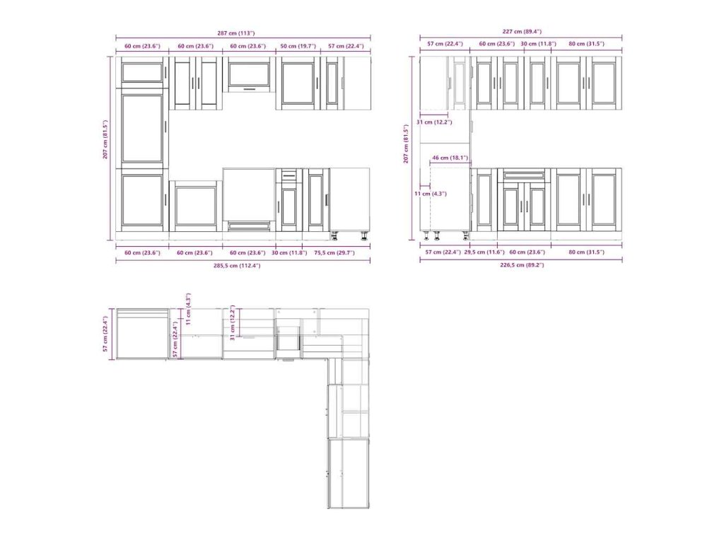 - 1 x kuchyňská rohová spodní skříňka: 75,5 x 75,5 x 81,5 cm (Š x H x V)