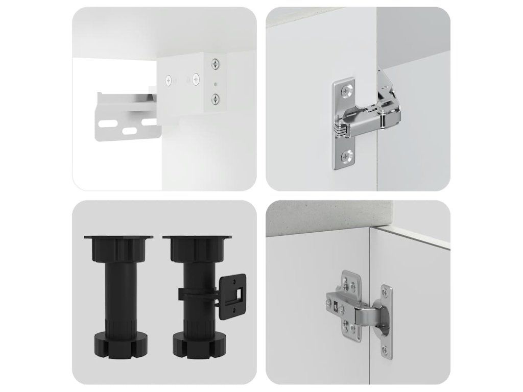 - Nastavitelné nožičky: Spodní skříňky mají nastavitelné nožičky, jejichž výšku lze nastavit tak, aby vyhovovaly uspořádání vaší kuchyně.