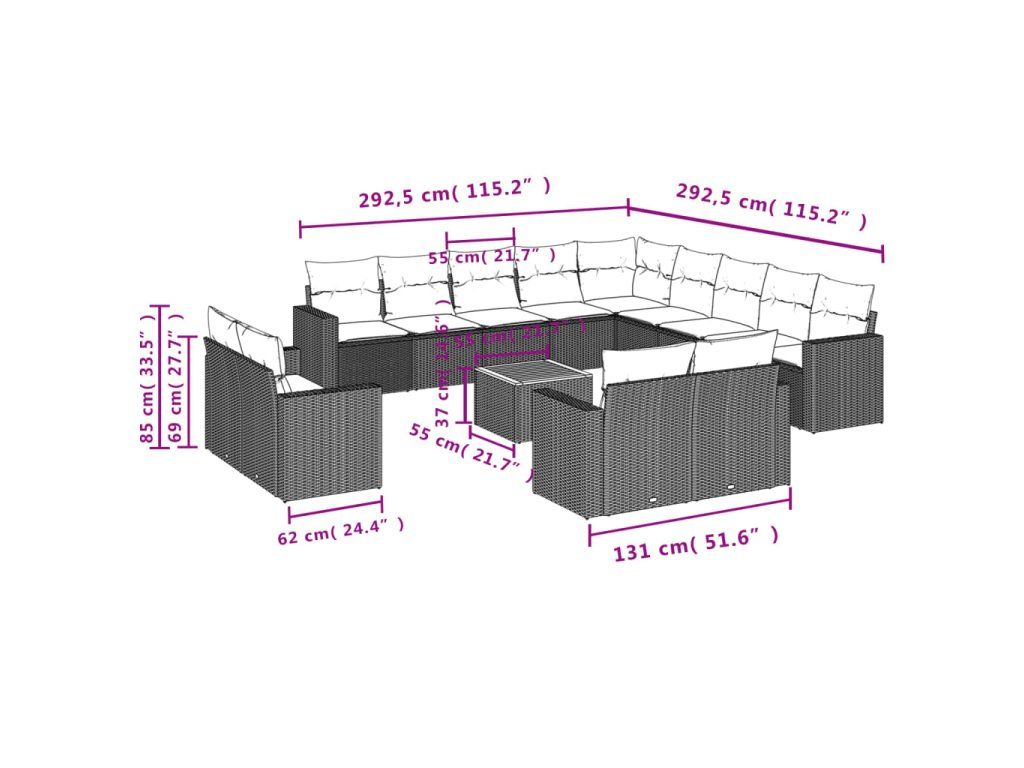Tato zahradní sedací souprava je dokonalým doplňkem vaší zahrady, terasy nebo dvorku a poskytne vám pohodlné a příjemné místo, kde si můžete povídat s rodinou a přáteli nebo jen tak odpočívat a užívat si pobyt venku.