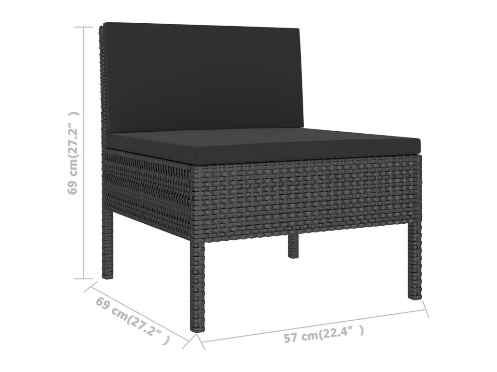 - Rozměry středové pohovky: 57 x 69 x 69 cm (Š x H x V)