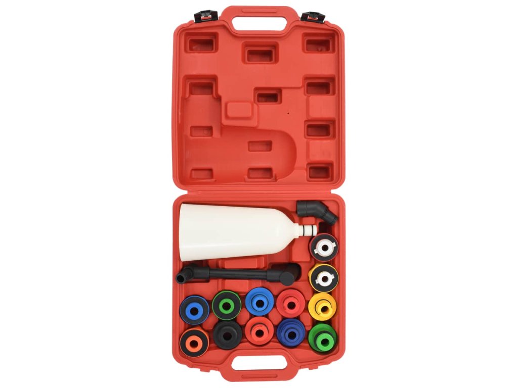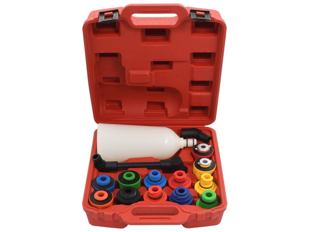 Set obsahuje 1 adaptér, 1 trychtýř, 1 prodlužovací trubici a 12 šroubovacích adaptérů. Dodávají se v pouzdře z foukaného plastu pro snadné skladování a přepravu.