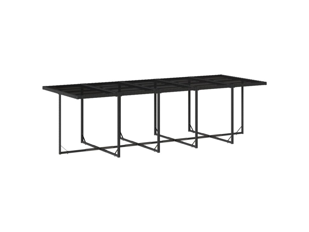 - Stabilní a snadno čistitelná stolní deska: Tento zahradní stůl má desku z tvrzeného skla, která je stabilní, odolná a snadno se čistí vlhkým hadříkem.