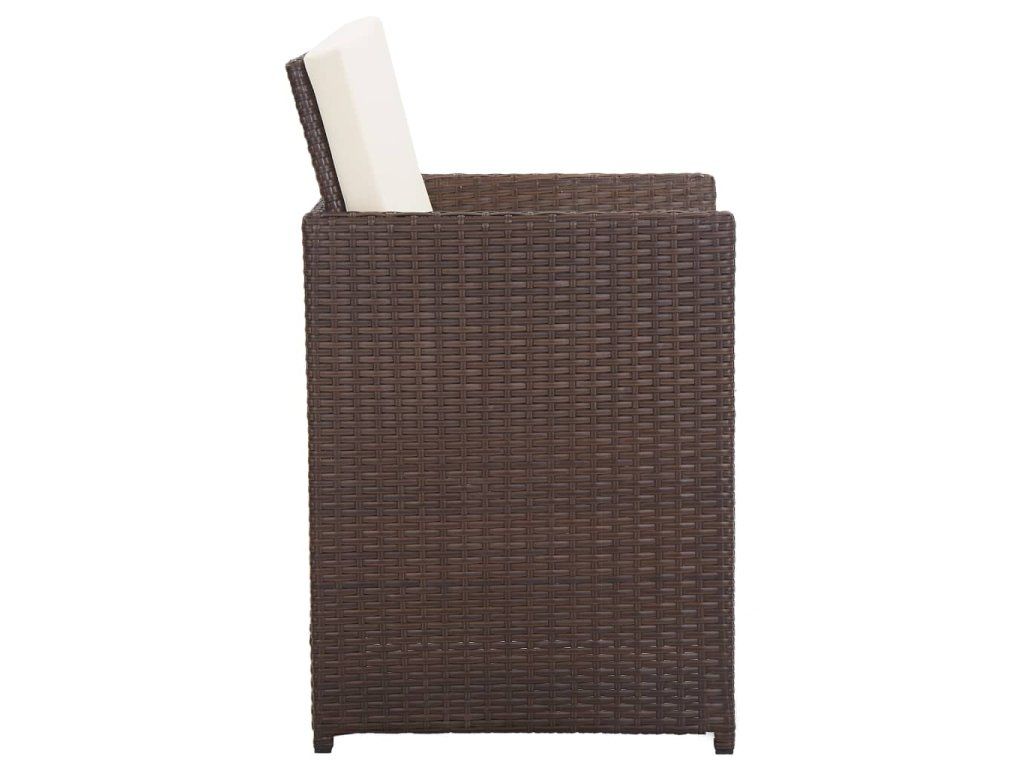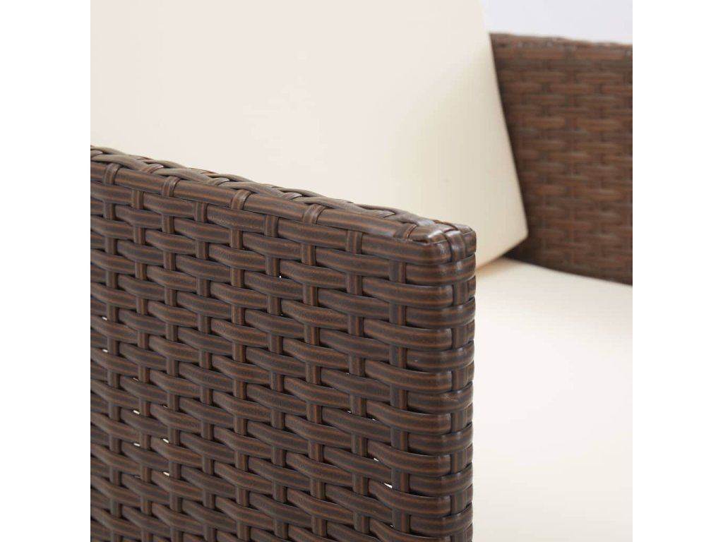Ocelové rámy zajišťují pevnost celé sestavy, zatímco PE ratan, který skvěle odolává vodě i rozmarům počasí, usnadňuje její čištění. Lehká konstrukce umožňuje bez námahy přesouvat všechny díly sedací soupravy. Silné podušky na sedáky a opěradla jsou ušité z vodoodpudivého polyesteru a zaručeně vám poskytnou maximální pohodlí. Samozřejmě je možné je sejmout. Praktické stoličky lze zasunout pod židle a židle se stoličkami zase pod stůl, takže pokud je právě nepoužíváte, ušetříte spoustu místa!