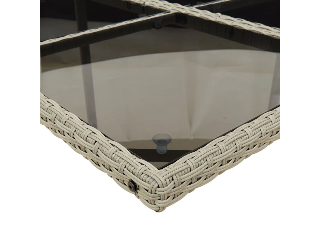 - Materiál: PE ratan, práškově lakovaná ocel, tvrzené sklo