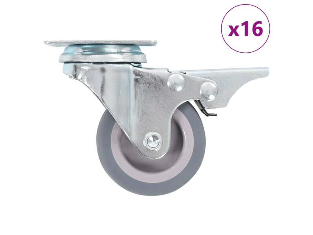 - Balení obsahuje 16 otočných koleček, z nichž polovina je s brzdou.