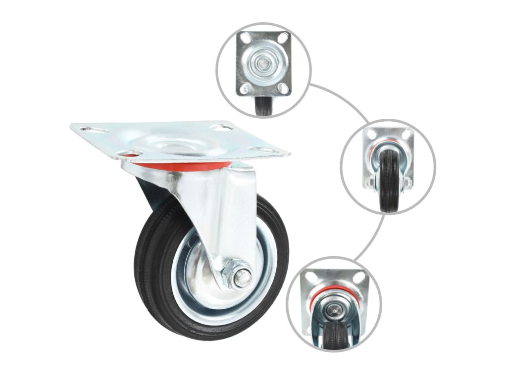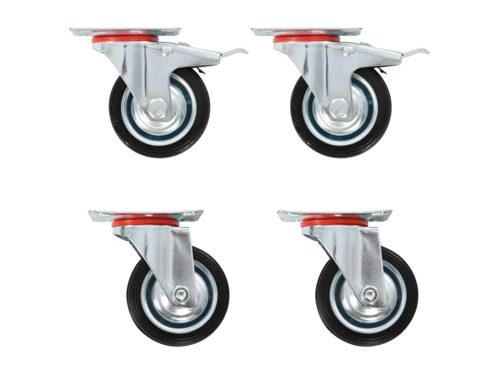 Kolečka jsou vyrobená z gumy, která je známá pro svou schopnost pohlcovat nárazy a vibrace. Ať už tedy kolečka namontujete na cokoliv, budete to moci přesouvat hladce a v tichosti. Jejich hladký povrch navíc ochrání vaši podlahu před poškrábáním. Zinkem potažený ocelový rám je odolný proti rzi, a tudíž kolečkům dodává na odolnosti a prodlužuje jejich životnost. Polovina těchto otočných koleček je vybavená dvojitou brzdou pro flexibilnější ovládání. Každé kolečko má maximální nosnost až 50 kg.