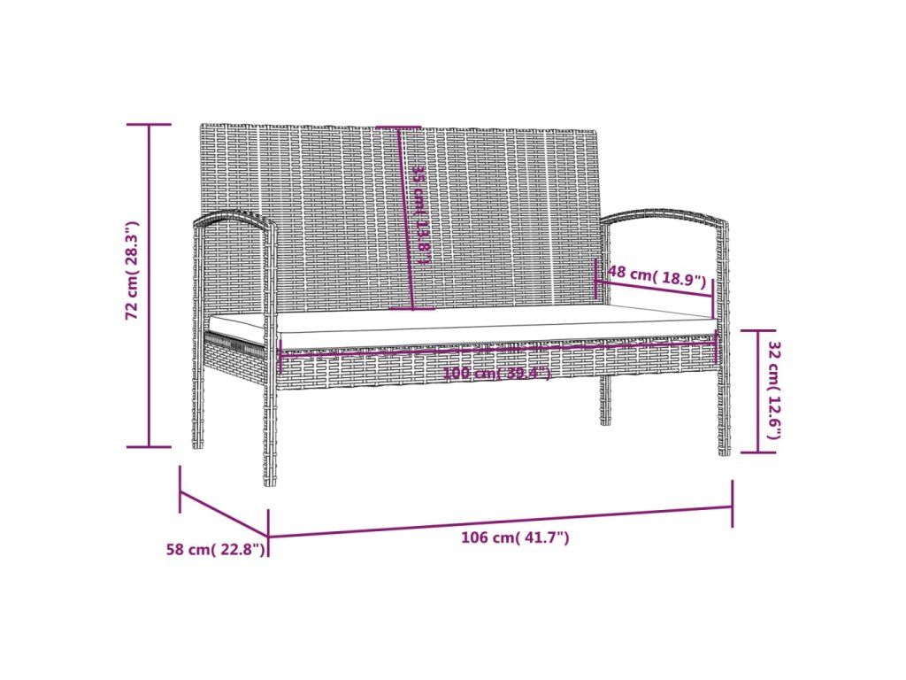 - Rozměry 2místné pohovky: 106 x 58 x 72 cm (Š x H x V)