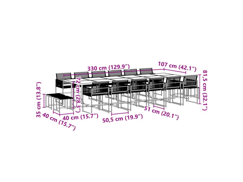 - Robustní a stabilní rám: Ocelový rám s práškovým nástřikem zajišťuje, že zahradní nábytek je pevný a stabilní pro každodenní venkovní použití.