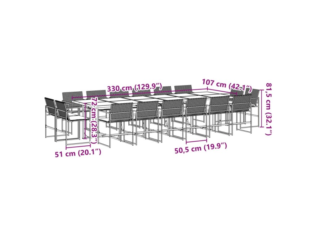 - Robustní a stabilní rám: Ocelový rám s práškovým nástřikem zajišťuje, že zahradní nábytek je pevný a stabilní pro každodenní venkovní použití.