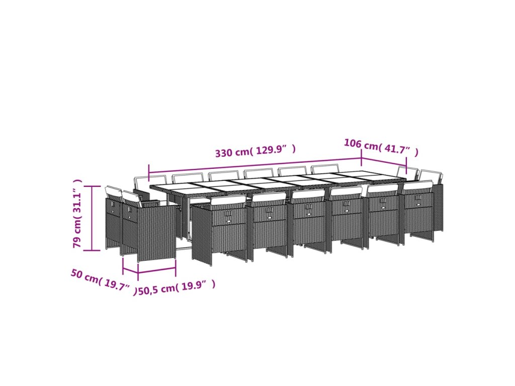 - Materiál: PE ratan, práškově lakovaná ocel, masivní akáciové dřevo s olejovou povrchovou úpravou