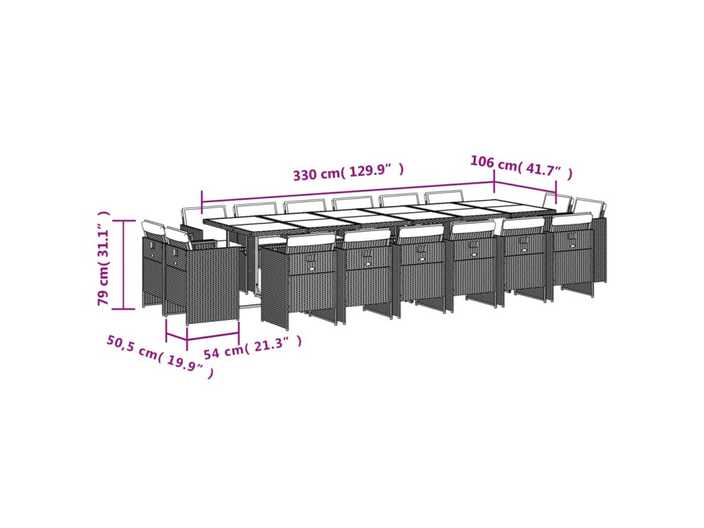 - Rozměry: 330 x 106 x 73 cm (D x Š x V)