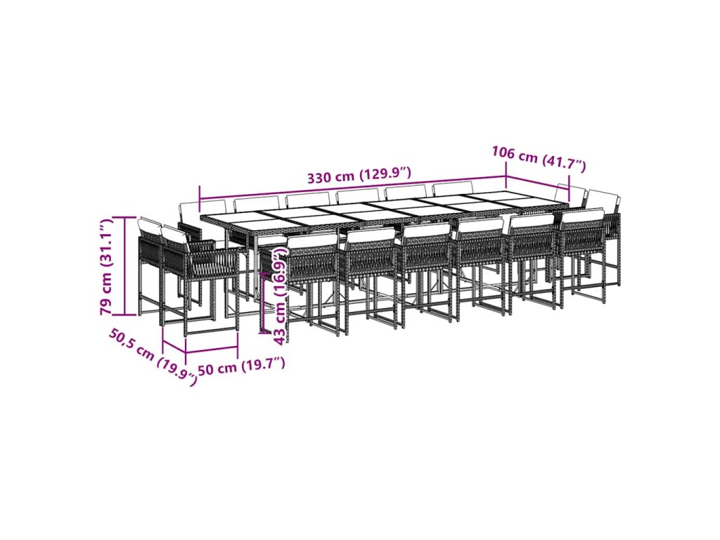 - Rozměry: 330 x 106 x 73 cm (D x Š x V)