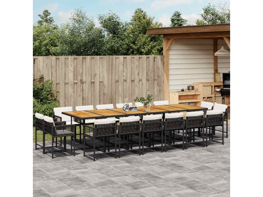 - Materiál: PE ratan, práškově lakovaná ocel, masivní akáciové dřevo