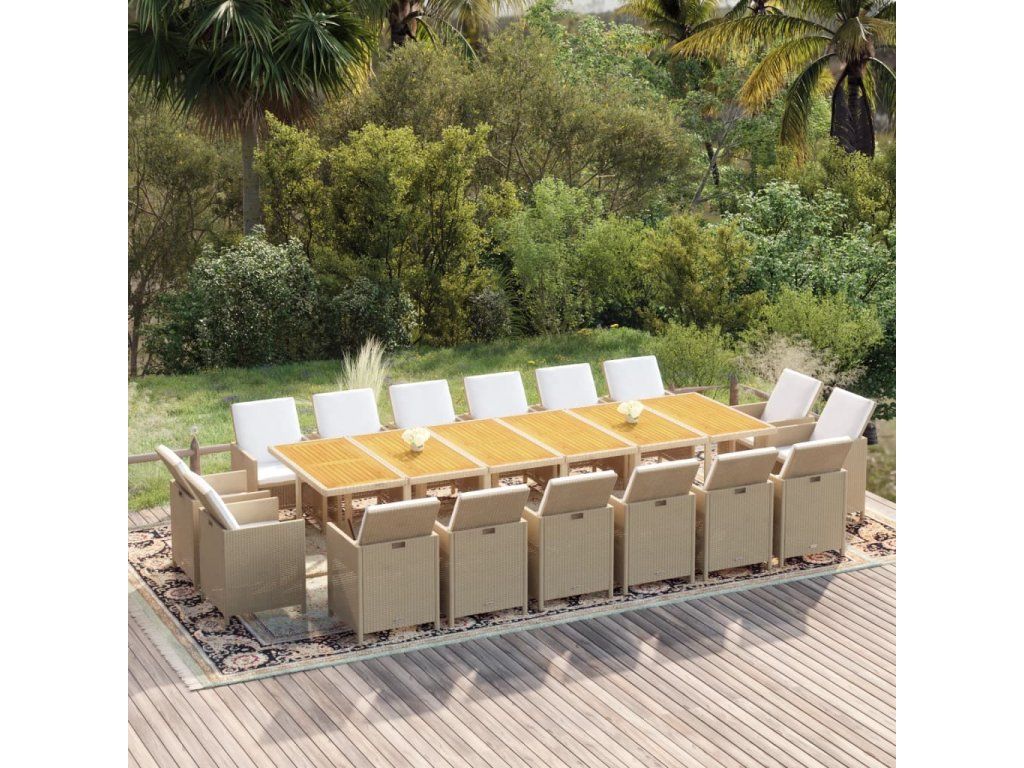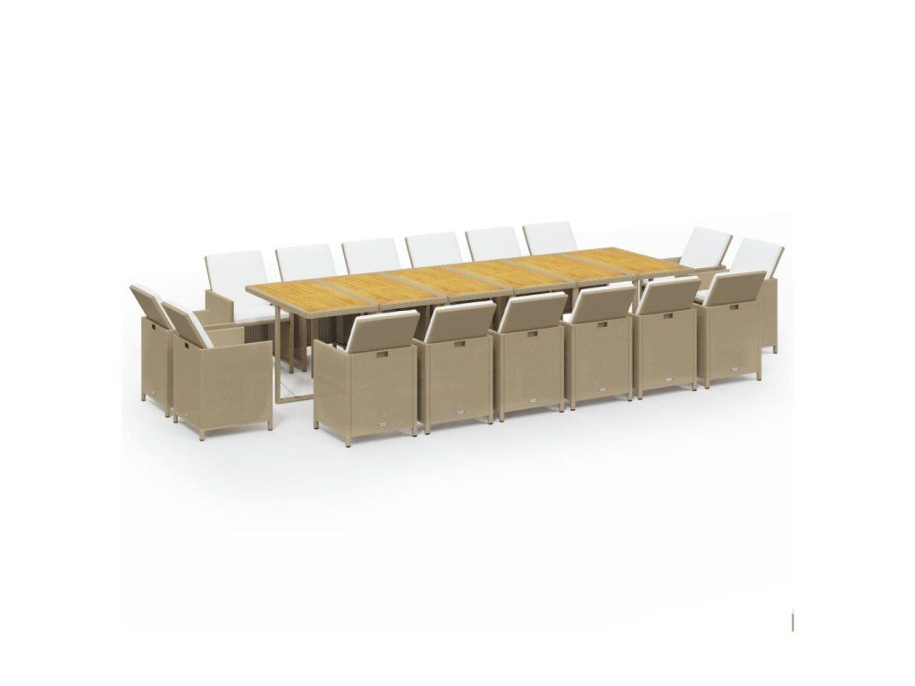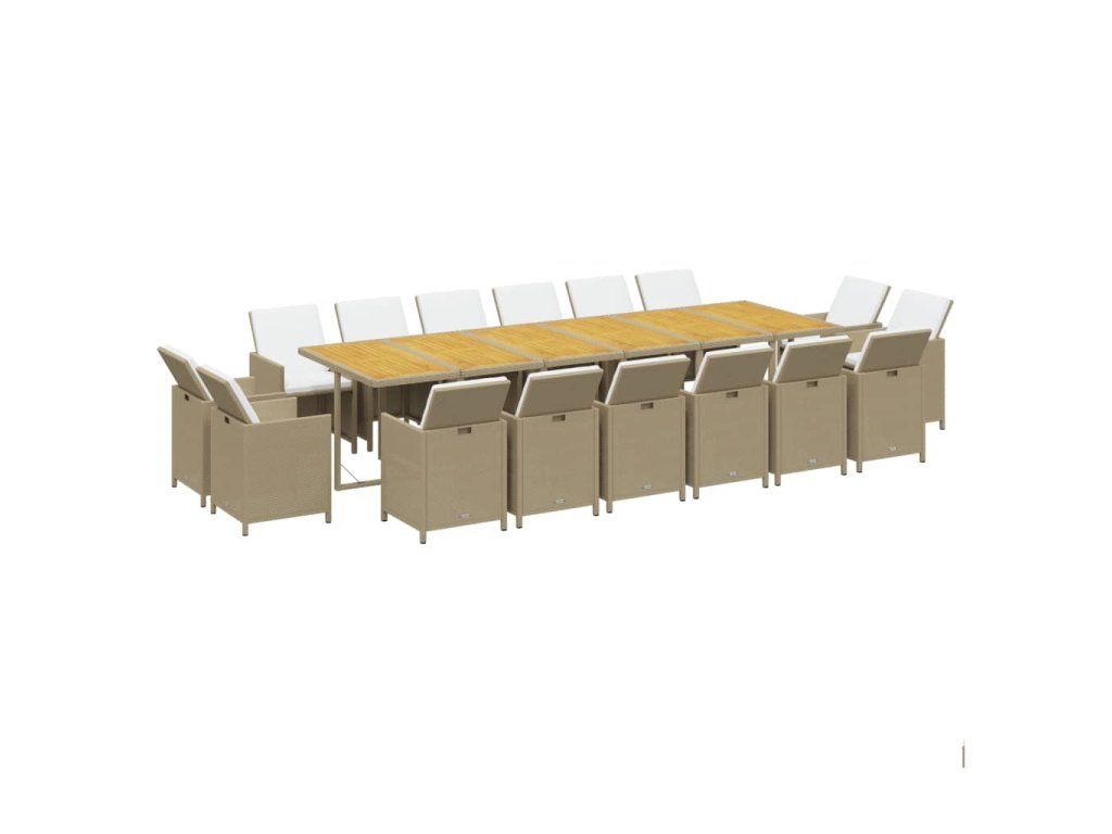 - Materiál: PE ratan, práškově lakovaná ocel, masivní akáciové dřevo s přírodní olejovou povrchovou úpravou