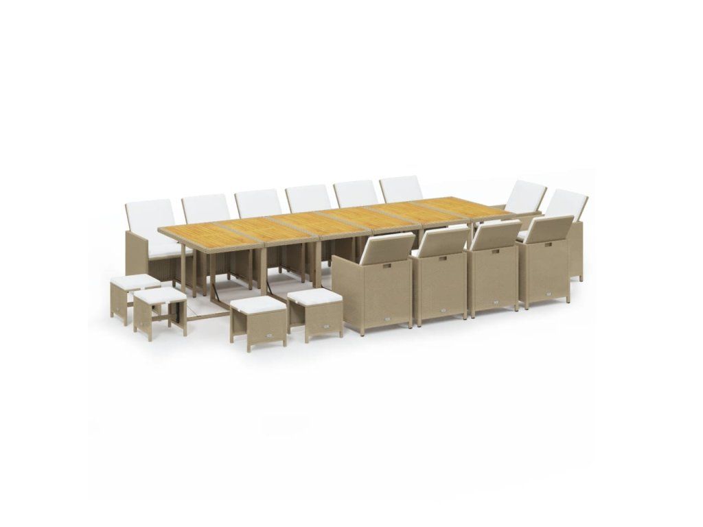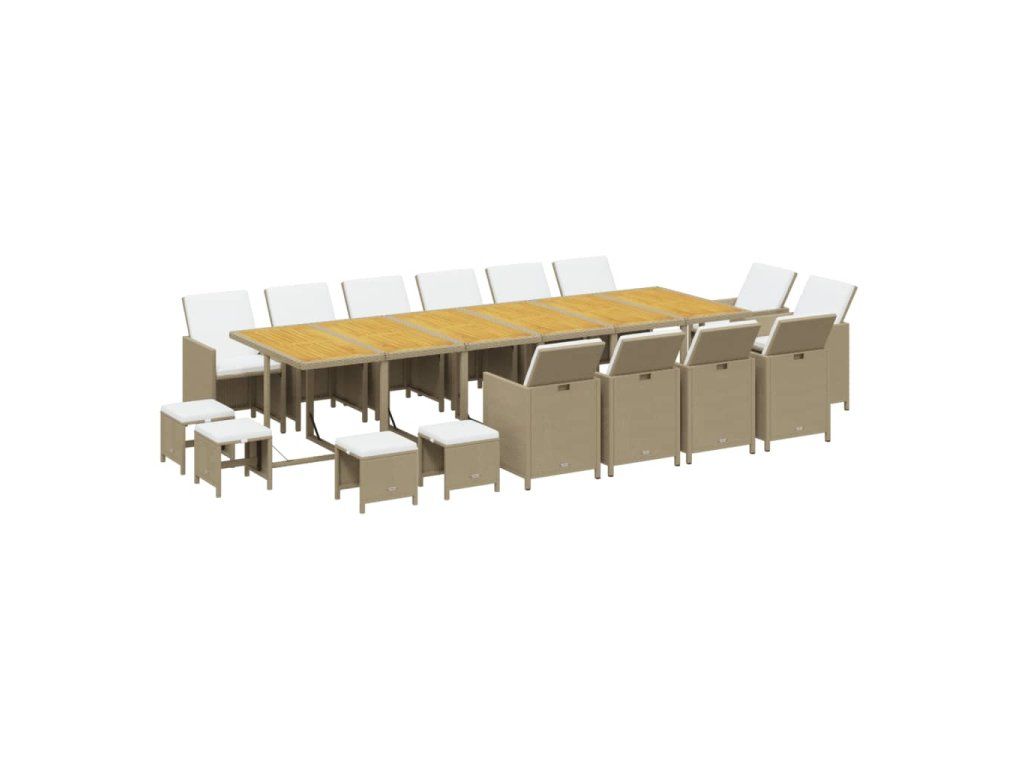 - Materiál: PE ratan, práškově lakovaná ocel, masivní akáciové dřevo s přírodní olejovou povrchovou úpravou