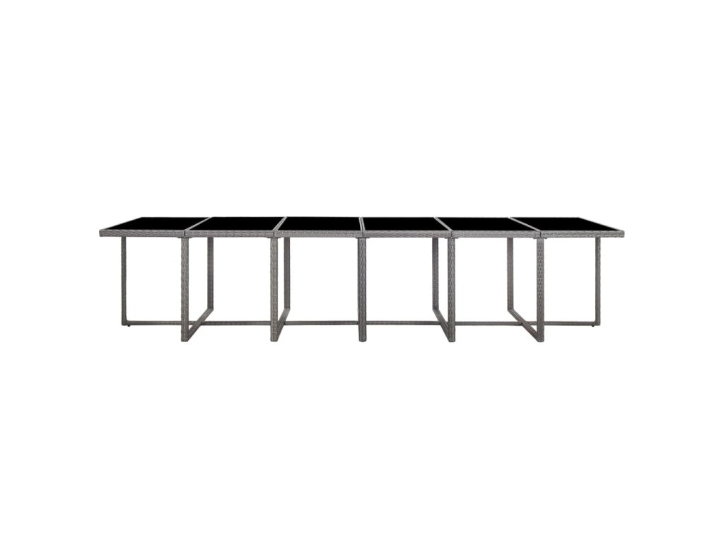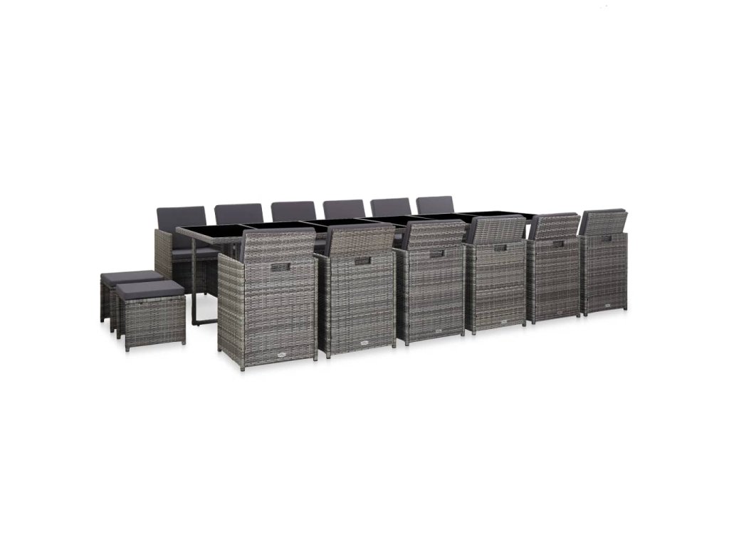 Balení obsahuje 1 stůl se skleněnou horní deskou, 12 ratanových židlí, 4 stoličky a 28 odnímatelných podušek.