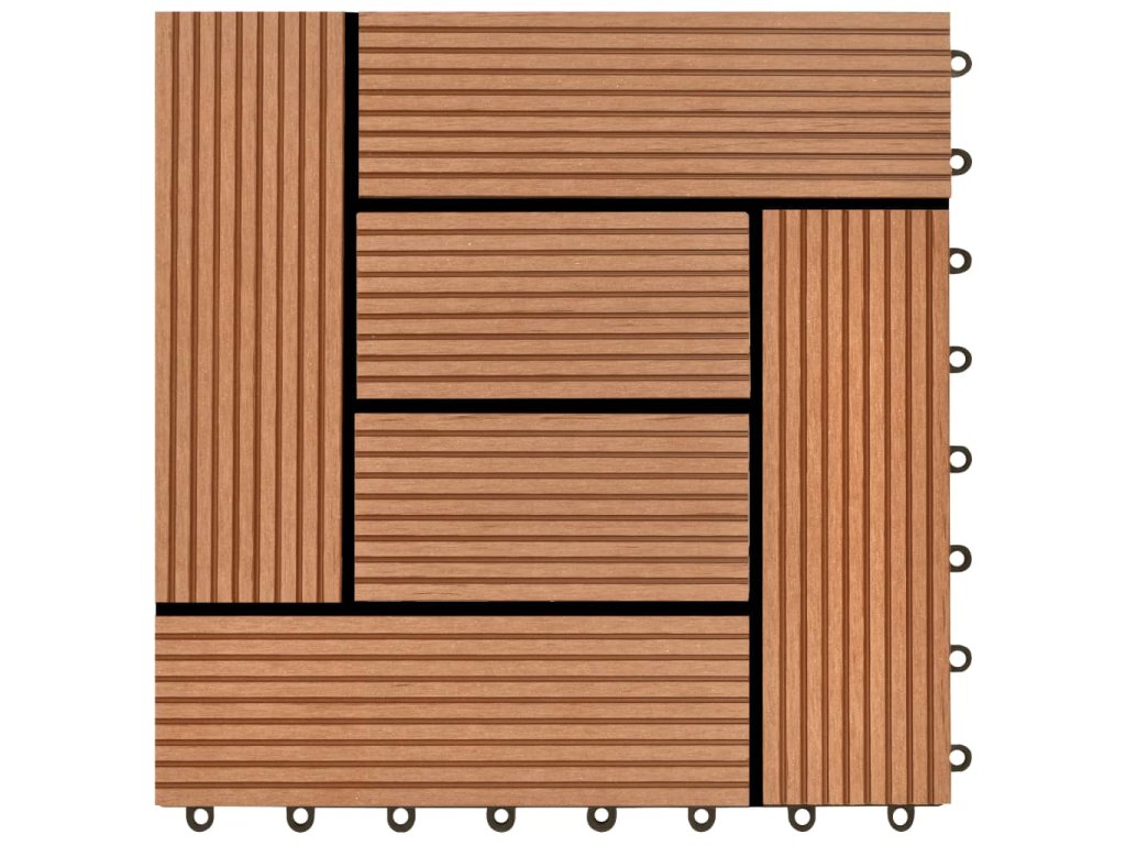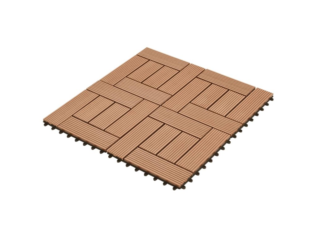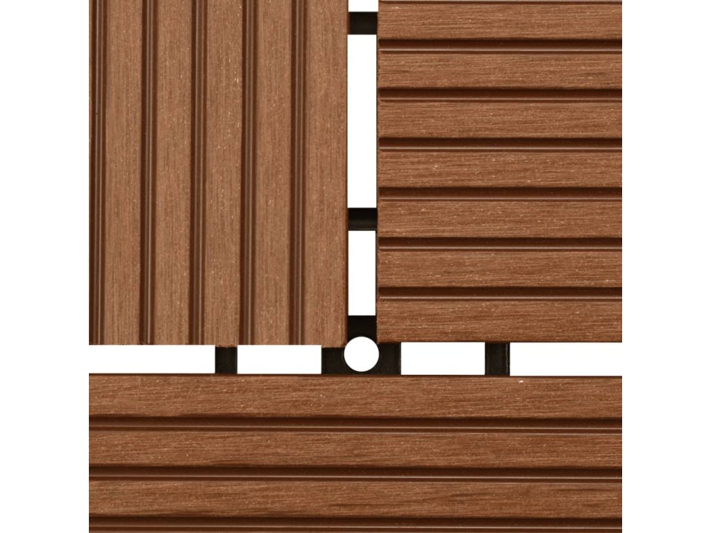 Tato sada terasových dlaždic z dřevoplastu obsahuje 22 kusů samostatných dlaždic o velikosti 30 x 30 cm, které dohromady pokryjí celkový povrch o rozloze 2 metrů čtverečních. Jsou ideální volbou na dvorky, balkony, do koupelny nebo k bazénu či vířivce.