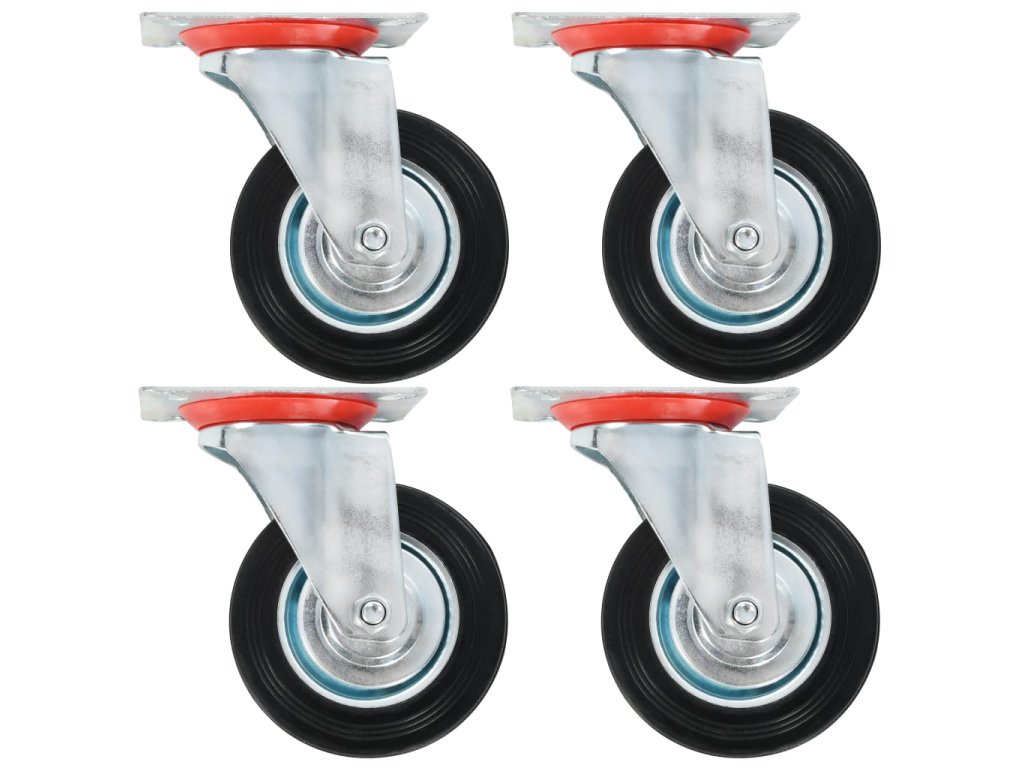 Kolečka jsou vyrobena z gumy, která je známá pro svou schopnost pohlcovat nárazy a vibrace. Ať už tedy kolečka namontujete na cokoliv, budete to moci přesouvat hladce a v tichosti. Jejich hladký povrch navíc ochrání vaši podlahu před poškrábáním. Zinkem potažený ocelový rám je odolný proti rzi, dodává kolečkům na odolnosti a prodlužuje jejich životnost. Každé kolečko má maximální nosnost až 70 kg.