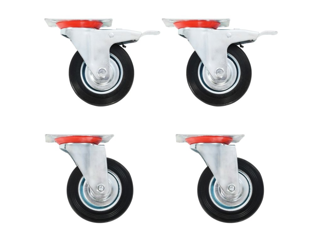 Kolečka jsou vyrobená z gumy, která je známá pro svou schopnost pohlcovat nárazy a vibrace. Ať už tedy kolečka namontujete na cokoliv, budete to moci přesouvat hladce a v tichosti. Jejich hladký povrch navíc ochrání vaši podlahu před poškrábáním. Zinkem potažený ocelový rám je odolný proti rzi, a tudíž kolečkům dodává na odolnosti a prodlužuje jejich životnost. Polovina těchto otočných koleček je vybavená dvojitou brzdou pro flexibilnější ovládání. Každé kolečko má maximální nosnost až 70 kg.