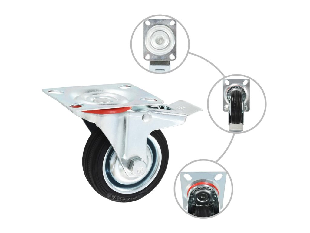 Kolečka jsou vyrobená z gumy, která je známá pro svou schopnost pohlcovat nárazy a vibrace. Ať už tedy kolečka namontujete na cokoliv, budete to moci přesouvat hladce a v tichosti. Jejich hladký povrch navíc ochrání vaši podlahu před poškrábáním. Zinkem potažený ocelový rám je odolný proti rzi, a tudíž kolečkům dodává na odolnosti a prodlužuje jejich životnost. Polovina těchto otočných koleček je vybavená dvojitou brzdou pro flexibilnější ovládání. Každé kolečko má maximální nosnost až 50 kg.