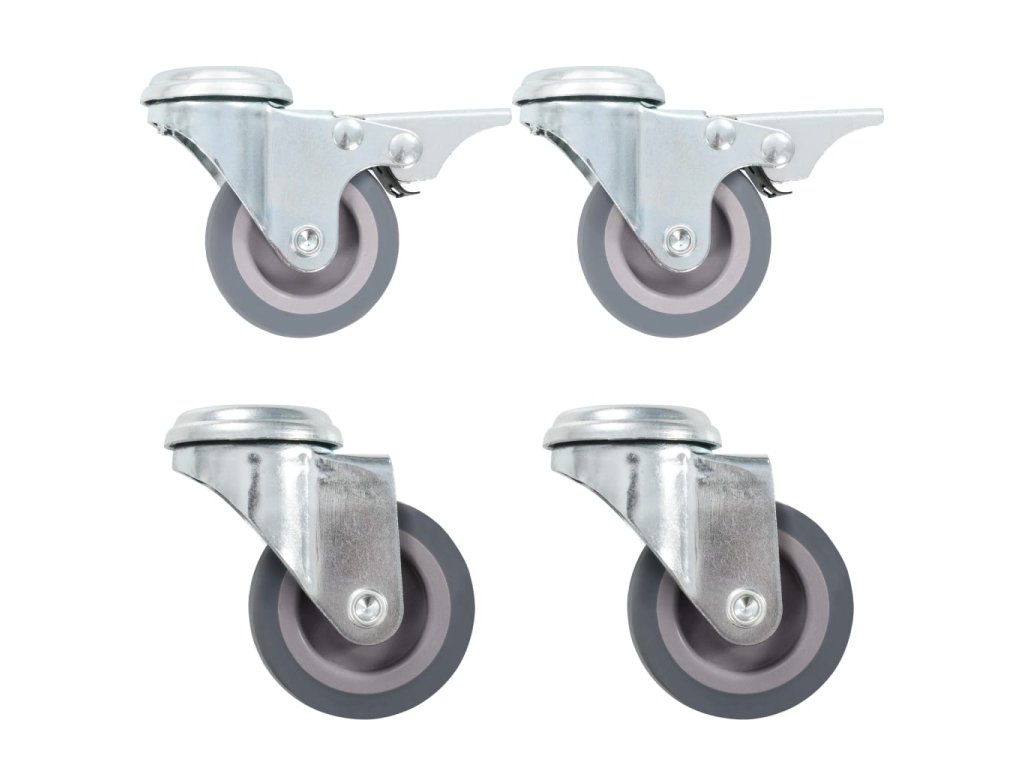 Kolečka jsou vyrobená z TPR (termoplastické gumy), která je známá pro svou schopnost pohlcovat nárazy a vibrace. Ať už tedy kolečka namontujete na cokoliv, budete to moci přesouvat hladce a v tichosti. Jejich hladký povrch navíc ochrání vaši podlahu před poškrábáním. Zinkem potažený ocelový rám je odolný proti rzi, dodává kolečkům na odolnosti a prodlužuje jejich životnost. Polovina těchto koleček je vybavená brzdou pro flexibilnější kontrolu. Každé kolečko má maximální nosnost až 35 kg.