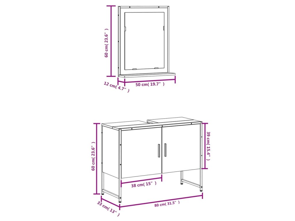 - Rozměry umyvadlové skříňky: 80 x 33 x 60 cm (D x Š x V)