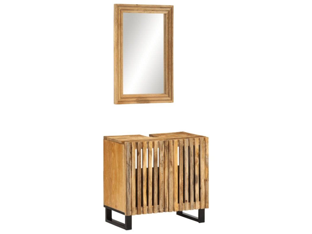 - Masivní mangovníkové dřevo: Skříňka je vyrobena z masivního mangovníku v kombinaci s kompozitním dřevem. Masivní mangovníkové dřevo je pevné tropické tvrdé dřevo, ze kterého se vyrábí robustní nábytek. Krásná kresba dřeva propůjčuje každému kusu nábytku jeho jedinečný a od všech ostatních lehce odlišný vzhled.