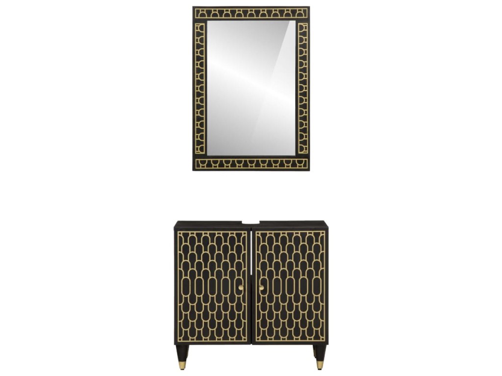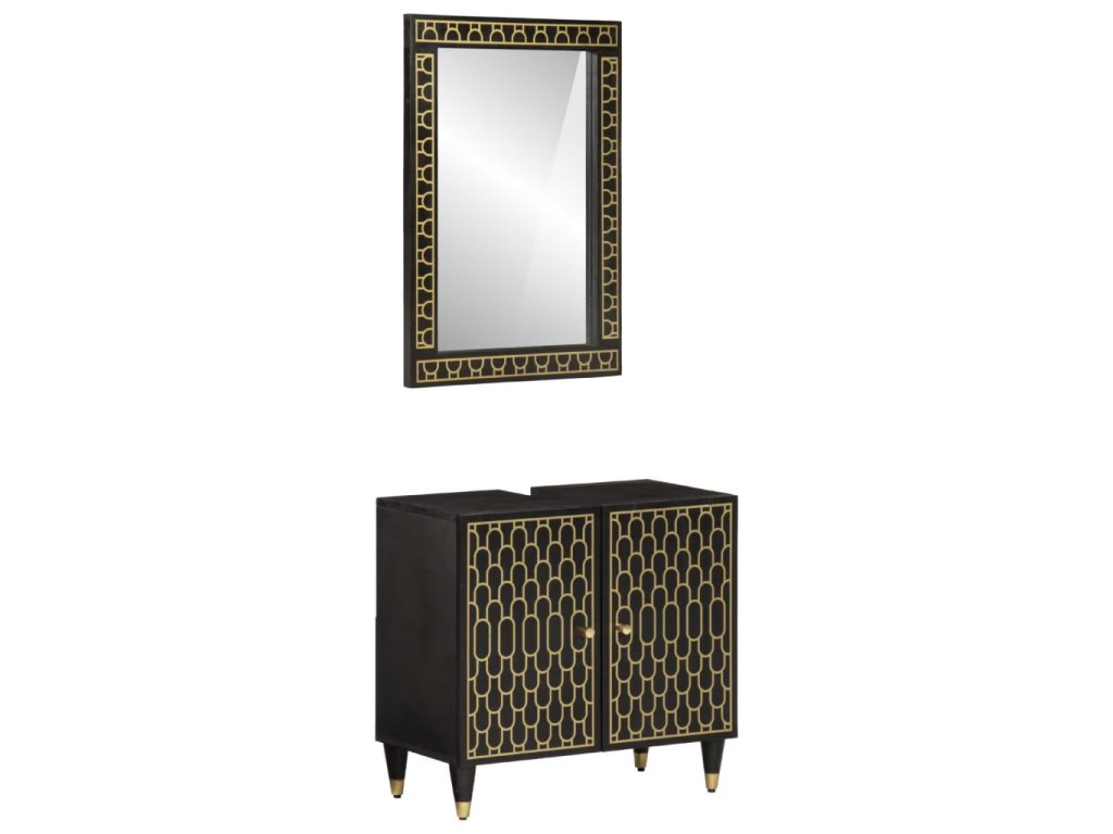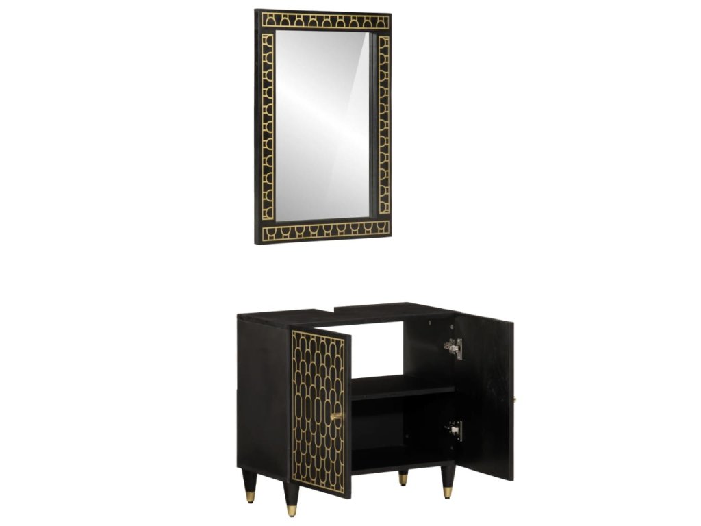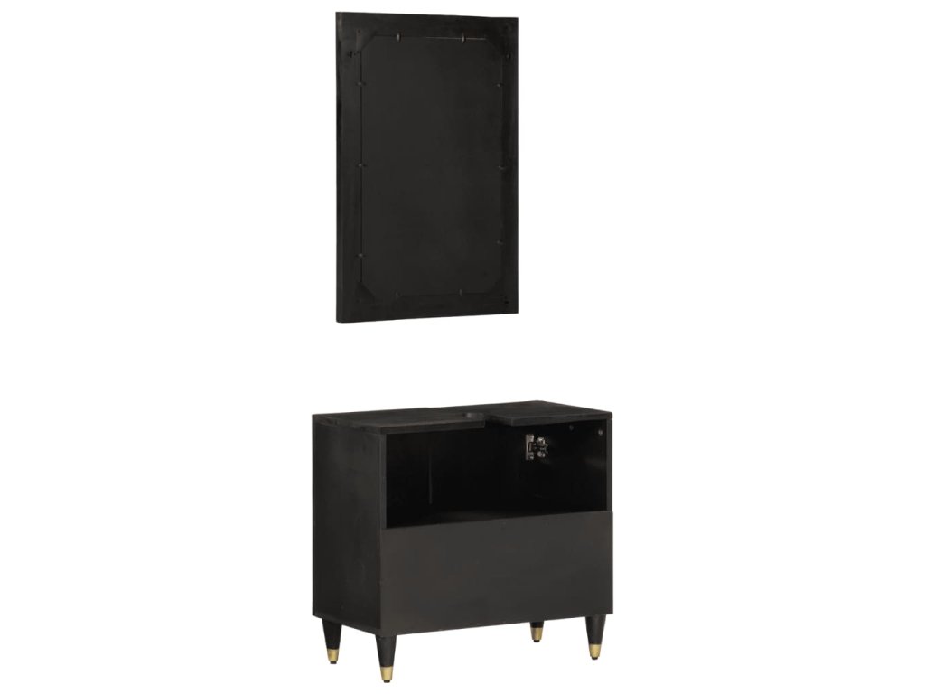 - Materiál: masivní mangovníkové dřevo s černou povrchovou úpravou, sklo