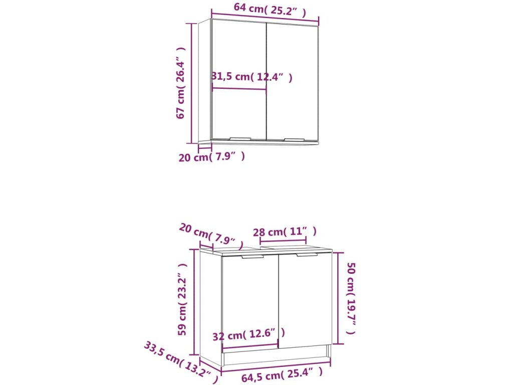 - Rozměry spodní skříňky: 64,5 x 33,5 x 59 cm (D x Š x V)