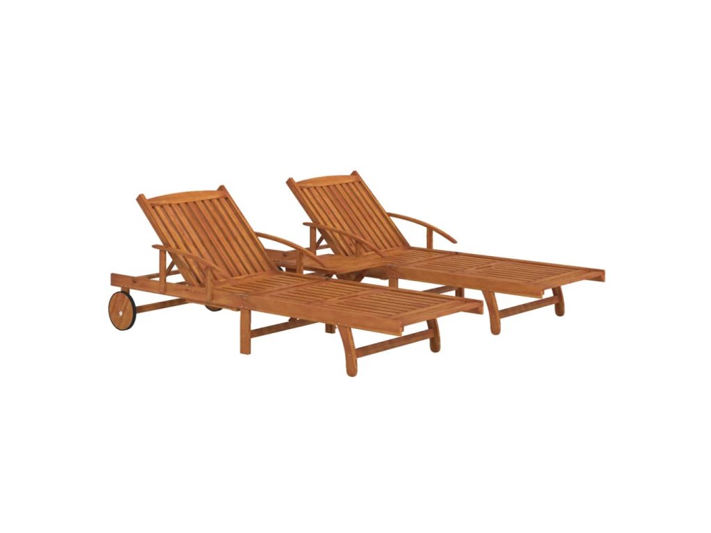 Sada dřevěných lehátek se stolkem se pyšní jedinečným designem a je báječným doplňkem na vaši zahradu, terasu nebo dvůr.