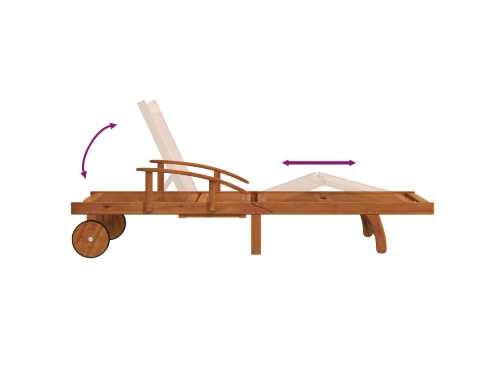 Tato zahradní sestava se vyznačuje pevnou konstrukcí z masivního akáciového dřeva s olejovou povrchovou úpravou, což jí dodává na stabilitě a odolnosti. Pevnou desku stolu lze využít k vystavení drobných předmětů na dosah ruky. Lehátko má také dvě kolečka pro snadné nastavení délky. Pokud lehátko a stolek právě nepoužíváte, můžete je složit, aby vám zbytečně nepřekážely.