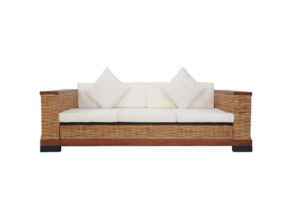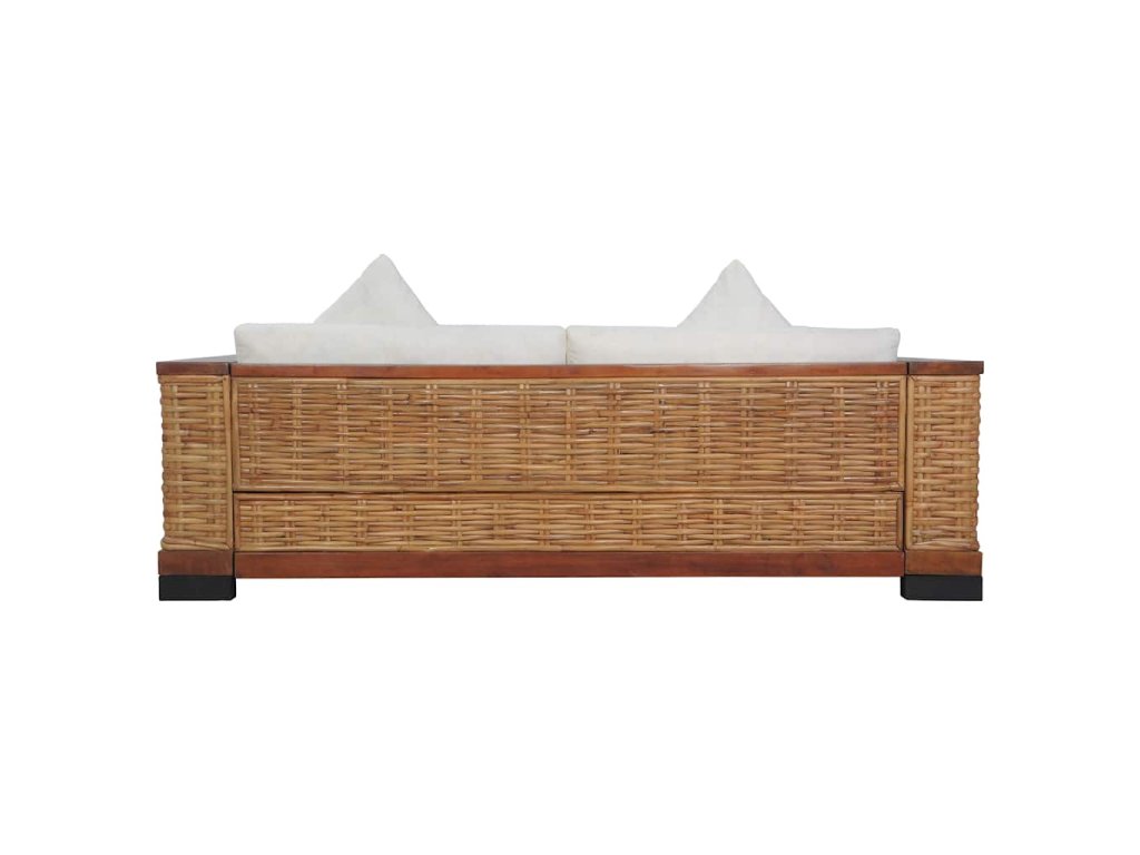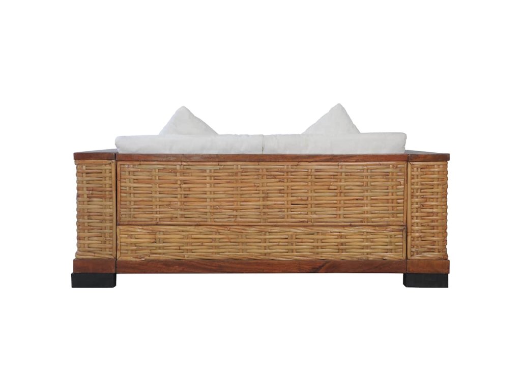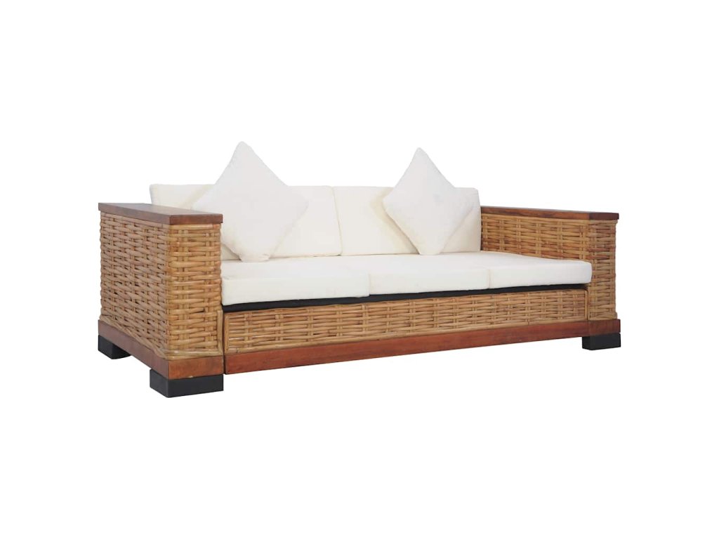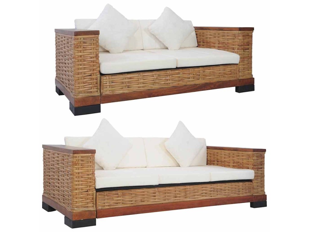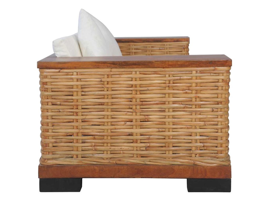Souprava je vyrobena z pravého ratanu, je tudíž odolná, skvěle se hodí pro každodenní použití a zároveň se snadno čistí. Má robustní dřevěný rám, který se vyznačuje dlouhou životností a mimořádnou stabilitou. Tlusté podušky na sedák a na opěradlo se výborně přizpůsobí vašemu tělu a jejich snímatelné potahy se dají prát. Široké područky rovněž přispívají k pohodlnému posezení.